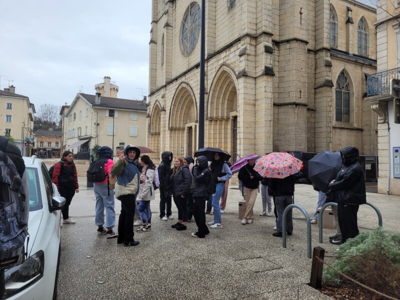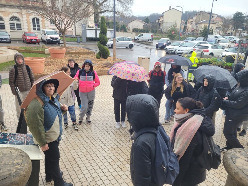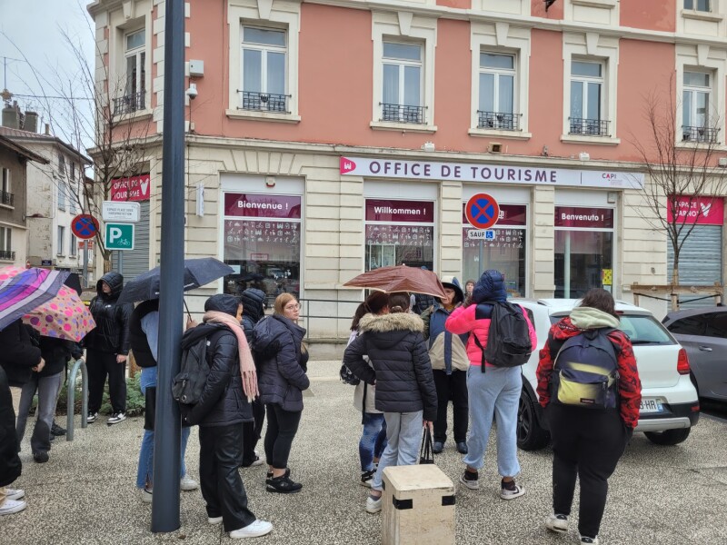 Après un pique-nique dans les locaux de la Fraternelle, les élèves ont suivi quelques étapes du parcours patrimonial de la ville de Bourgoin-Jallieu en suivant les explications de Mme Anne Rajon et sont passés devant de nombreuses structures du territoire (la Médiathèque, la Conservatoire, la Maison du Département, l’office du Tourisme, les structures privées du Service à la personne… ).