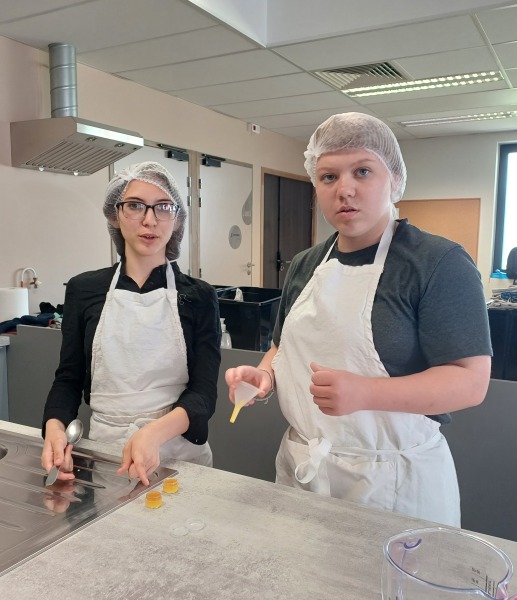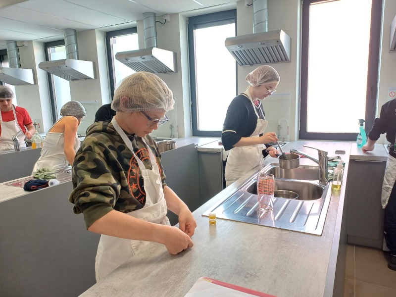 Dans la cuisine pédagogique, un des plateaux techniques du lycée, ils ont fabriqué des baumes pour les lèvres et le corps en utilisant des ingrédients naturels tels que l’huile d’olive, la cire d’abeille et des huiles essentielles.