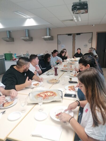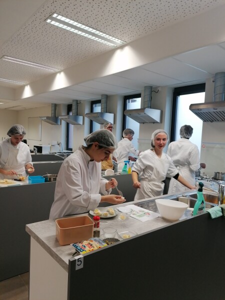 Les différents groupes se sont mis au travail et ont réalisé diverses préparations culinaires : pizzas, œufs mimosa, quenelles, compotes…