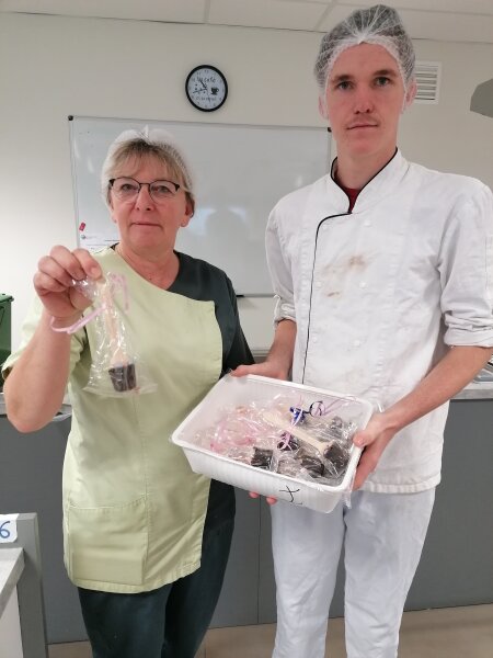 À chaque début de séance, les élèves du lycée ont été gâtés. Ils ont eu un cadeau apporté par les jeunes de l’IME : confitures de tomates, cuillères recouvertes de chocolat…