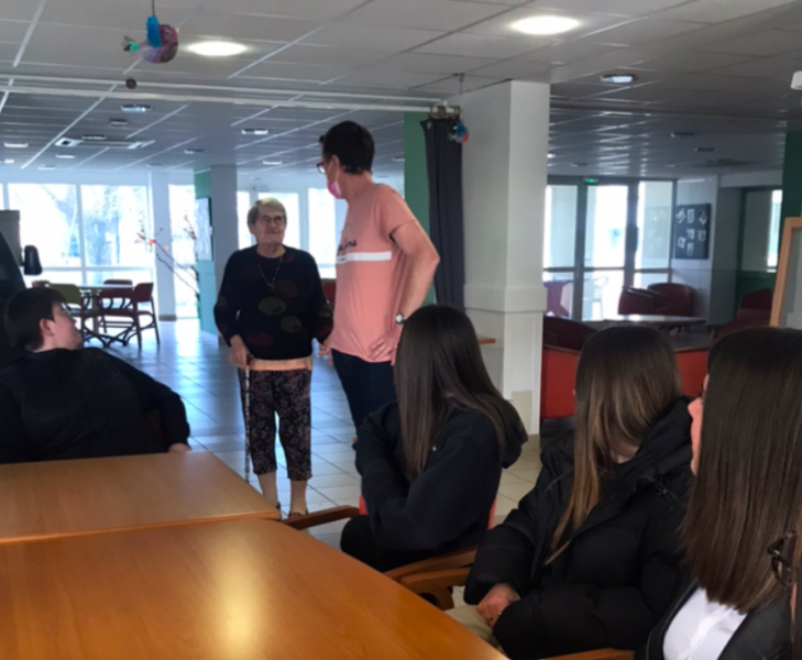 Dans le cadre de leur projet en Éducation Socio-Culturelle, la classe de 1ère Bac Pro SAPAT (Services Aux Personnes et Animation dans les Territoires) a rencontré Stéphane Goubet, animateur de l’EHPAD de la Barre à Saint-Jean-de-Bournay.