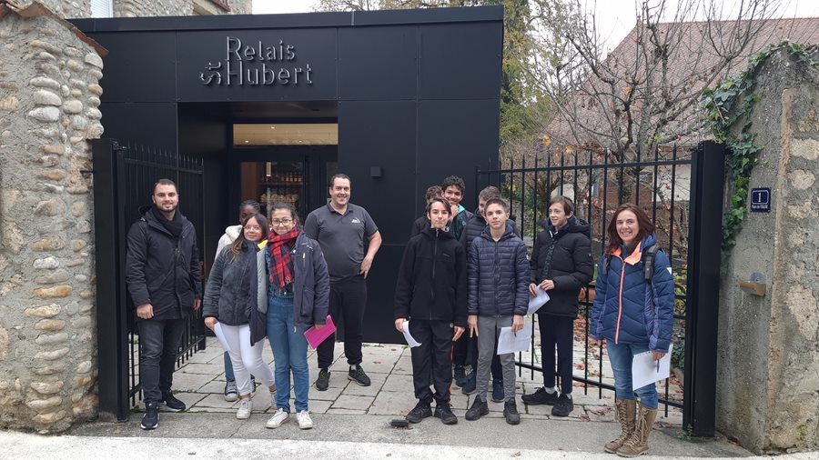 Aujourd’hui la classe de 3ème du site de Châbons est allée à la rencontre de M FONTENEAU, le directeur et chef cuisiner du relais Saint Hubert.